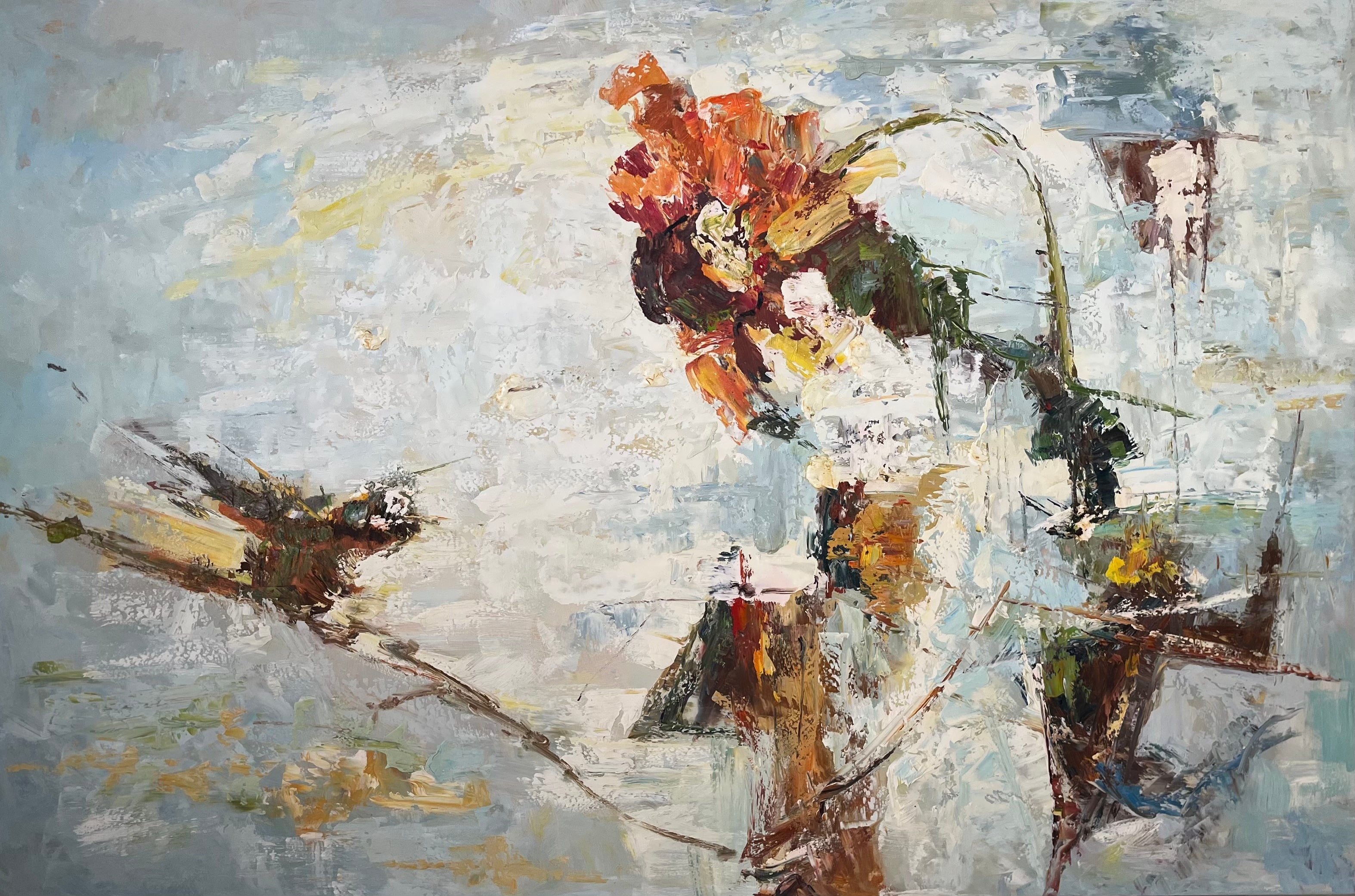 - Materials/Textures: Thick, textured appearance typical of oil paint with visible brushstrokes and impasto techniques